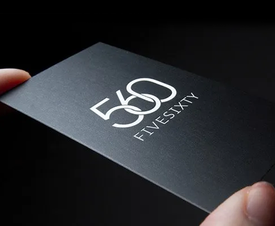 A smooth matte laminated business card with a soft, non-gloss finish. The matte laminate adds a refined, elegant feel while protecting the card and giving it a clean, modern look.